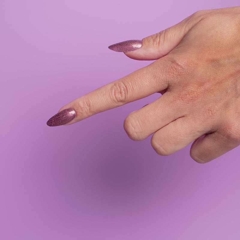 Meta Rose è una tonalità unica che unisce il bagliore della polvere galattica color rame-oro alla mistica profondità viola del cielo notturno. Immerso in questa aura cosmica, brilla con migliaia di minuscoli riflessi olografici che brillano come stelle negli angoli più remoti dell'universo. Meta Rose è una tonalità che delizia e ti ispira a creare stili ultraterreni sulle tue unghie.
